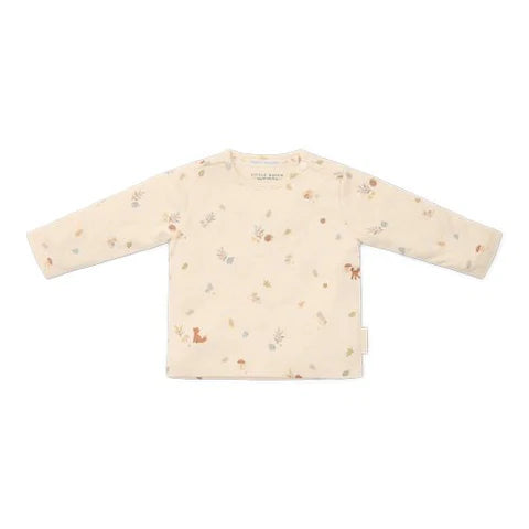 Hilf den Füchsen und Igeln, alle Leckereien aus dem Wald zu finden! Dieses Langarmshirt hat einen niedlichen Allover-Print mit Blättern, Eicheln, Pilzen, Füchsen, Igeln und mehr. Es verleiht dem Outfit deines Kleinen einen Hauch von Eigenart und spiegelt die Schönheit der Natur im Wald wider. Hergestellt aus weicher Bio-Baumwolle, hat das T-Shirt zwei Druckknöpfe an der Schulter, um es leicht an- und auszuziehen. Kombiniere es mit der passenden Hose oder mixe und kombiniere es mit allen Artikeln aus der koordinierten Forest Friends-Kollektion.